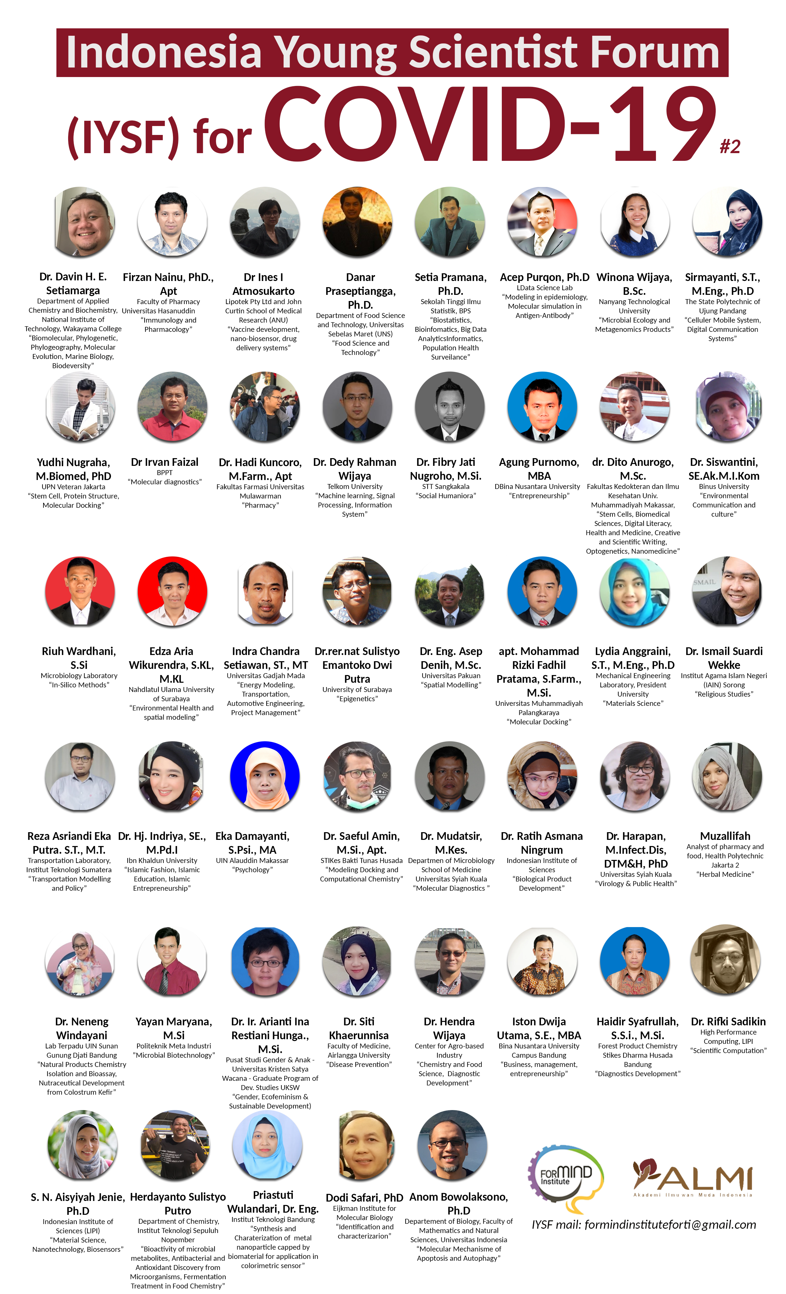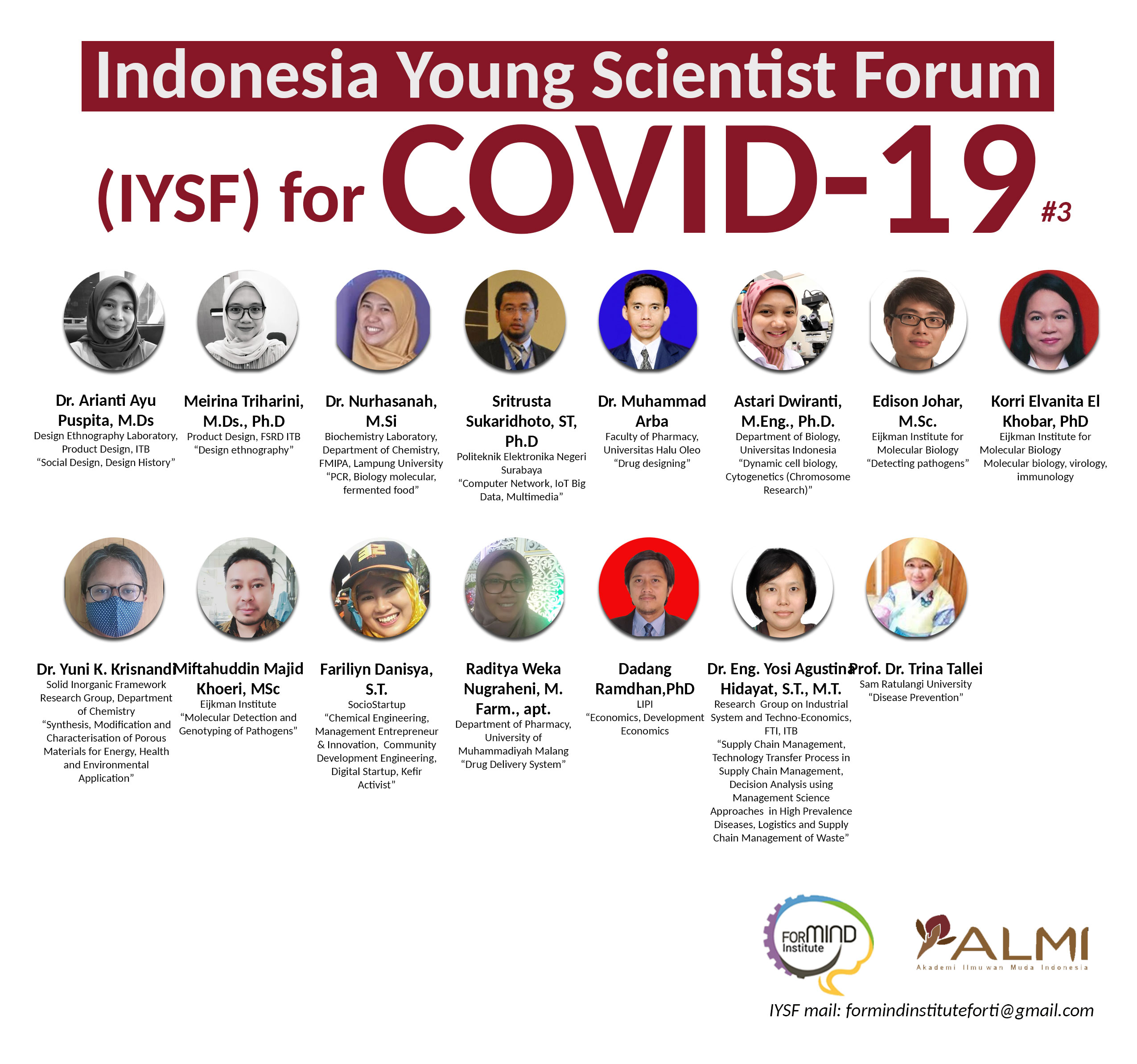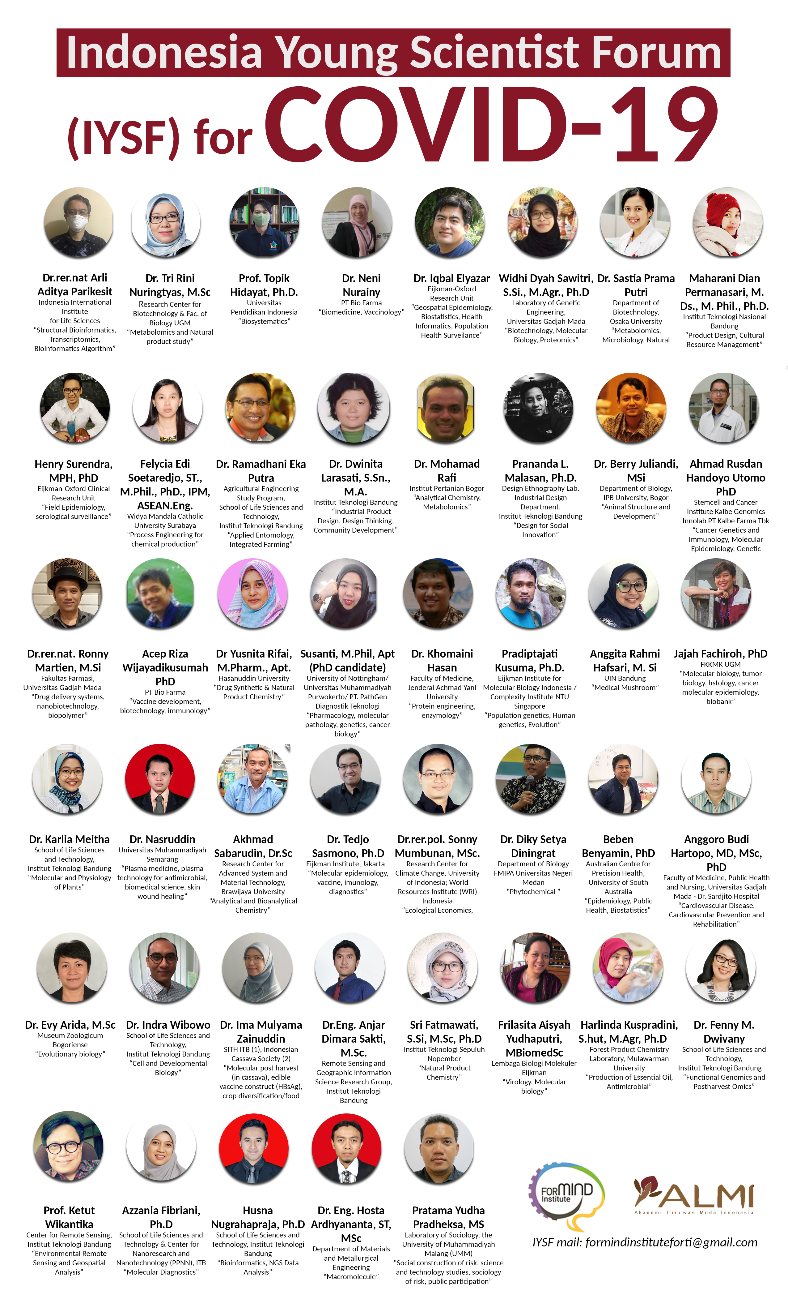 Indonesia dan seluruh dunia sedang menghadapi pandemi yang disebabkan oleh virus Corona baru, yang menimbulkan penyakit yang dikenal sebagai Covid-19. Di saat-saat seperti ini, kami melihat bahwa sains dapat memberikan berbagai solusi langsung. Sebagai perpaduan berbagai keahlian, IYSF mengajak Anda untuk bergabung dalam kolaborasi ini.